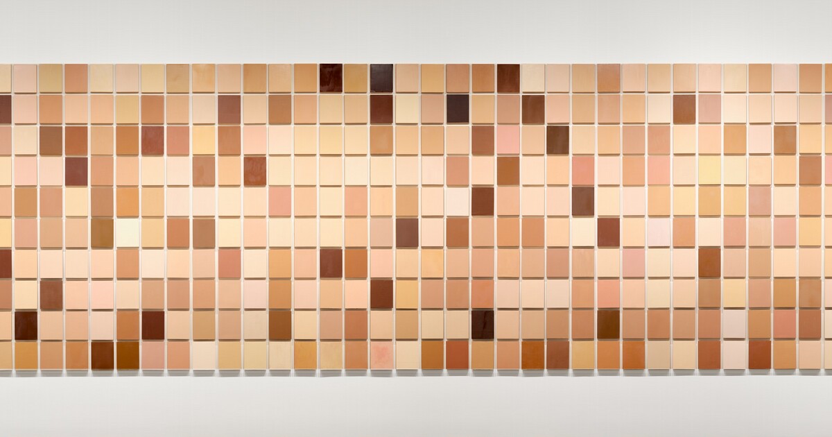 “Synecdoche is a multi-panel painting. I made the individual panels by going out of my studio, and finding people, and just asking them if I could copy their skin color. And almost always they said yes. There were a variety of people, from picnickers in the park to college students to famous artists. So I'd sit down with the person, and I would mostly look at their arm. I would generally avoid using the face, because a person's face skin color tends to change really drastically as they're talking. It’s a really difficult color-mixing problem. Because the colors are really unnameable colors. And so you really have to get in there and find the color.