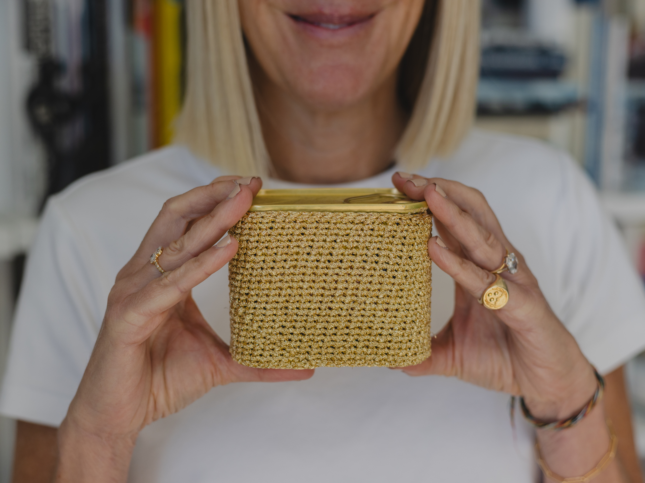 Haegue Yang’s work often brings together the industrial and the handmade, the historical and the personal. One of my favorite pieces is on the shelf itself: a can of Spam wrapped in a gold cozzie crocheted by the artist herself. It’s both absurd and poignant. A mass-produced object, once a wartime staple, transformed into something fragile, beautiful, even sacred. It speaks to survival, migration, labor—yet it’s also just a can of Spam wearing a handmade coat. That paradox is where Haegue’s brilliance lies.